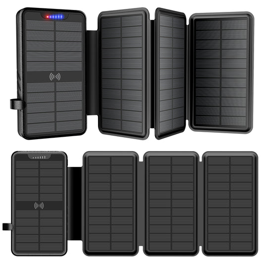Wireless Solar Power Bank 20000mAh Portable Folding Solar Panel 6W