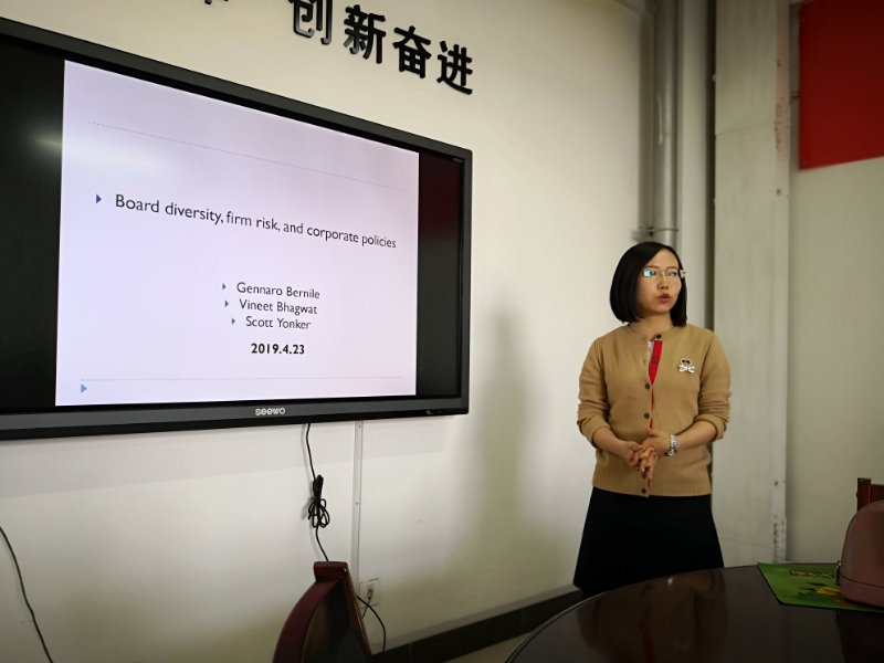 2019年4月23日下午,TYC234CC太阳成集团学院学术论坛由贺亚楠博士向全院师生讲解2016年发表在JFE上的一篇论文《Board diversity,firm risk and corporate policies》。文章背景是源于近年来公司董事会的多样性受到了政治和媒体的广泛关注,但此前研究大多数侧重多样性的某个方面。作者观察表明,近年来,公司董事会多样性,一方面导致决策趋于温和,但没有系统的证据表明这些影响对公司董事会的运作产生了影响;另一方面会加剧冲突并扰乱董事会决策过程,导致公司风险和波动性更高而不是更低。文章推测,更大的董事会多样性应该导致更稳定的结果。董事会多样性是否会影响公司波动性,是文章分析的核心研究问题。文章构建了董事会多元化指数,检验多元化对公司风险的影响,发现更高的多元化程度会带来更低的波动性及更好的业绩表现;但同时多元化对研发投入增加的影响也很显著。众所周知研发投入会提高企业风险,这与其他结果相矛盾。为此文章进一步检验发现多元化也会同时增加研发产出,增加研发产出会降低企业风险。此外,贺老师对文章中所采用的工具变量进行了详细介绍,增加了学院师生对工具变量使用的知识面。