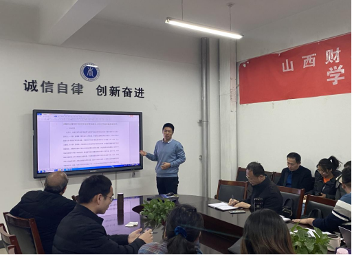 第三场报告由李林波老师进行汇报,题目为:金融科技驱动下资本市场监督效能与上市公司高质量发展研究。汇报的内容主要包括:研究背景,相关概念含义,研究目标、内容与方法以及研究创新与贡献。李老师汇报结束后,学院师生就题目设定、路径机制选取、变量间内生性问题和框架结构系统性等方面对报告内容进行了点评与讨论。