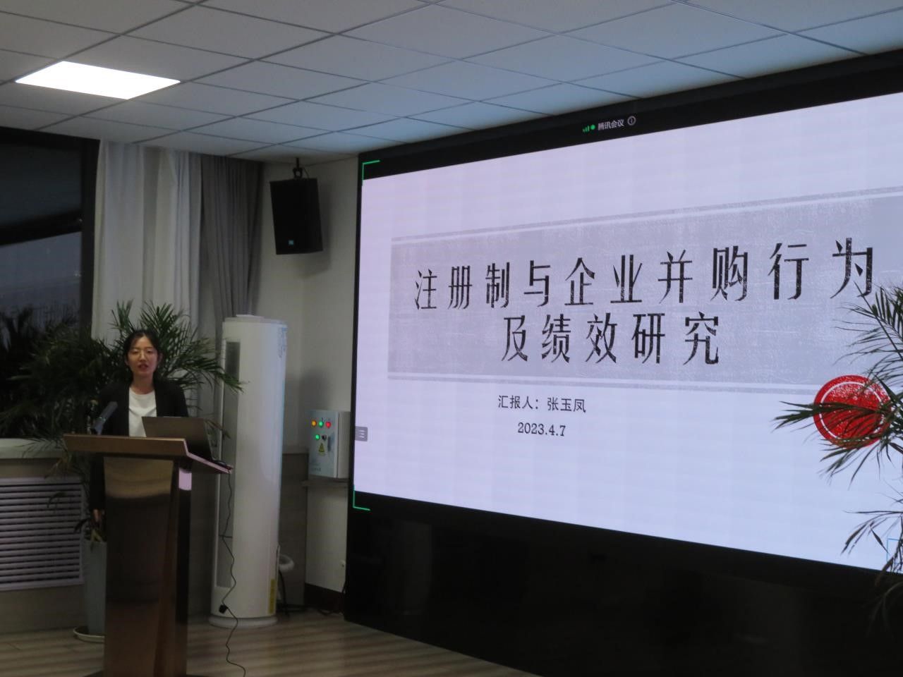 接下来进行了本次研讨会的第二项内容——由博士生张玉凤分享《注册制与企业并购行为及绩效研究》以及自己博士毕业论文的研究思路。