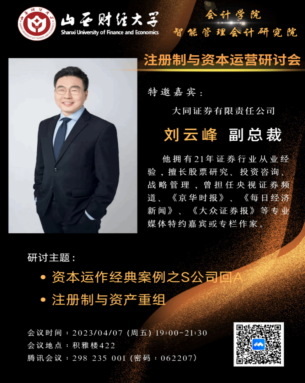在国际经济形势普遍下行的不利环境和中国共产党的坚强领导下,中国经济逆流而上,保持了稳定的增长态势,这也使得大批优质企业纷纷回归A股上市,对中国资本市场产生了重大利好。与此同时,随着全面注册制的大幕正式拉开,中国企业IPO上市与并购重组等资本运作行为也受到了重大影响,优质企业获得了更加轻松快捷的上市融资机会。在此背景下,4月7日晚7-10点,TYC234CC太阳成集团联合智能管理会计研究院通过线上线下相结合的形式,召开了注册制与资本运营热点问题专题研讨会,线上线下累计参会人数近二百人。