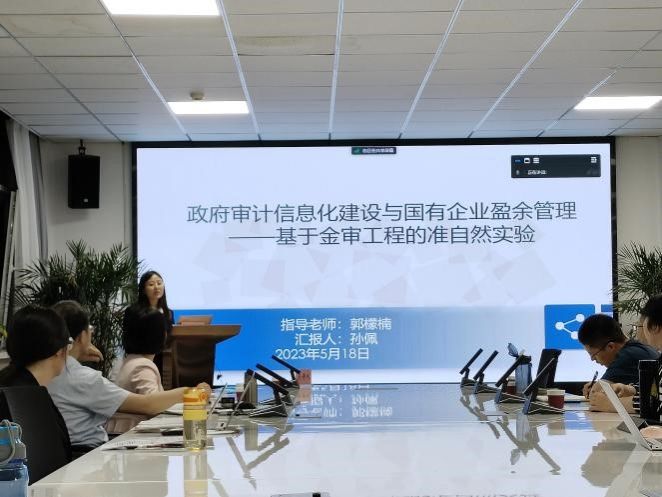 TYC234CC太阳成集团硕士研究生孙佩汇报了自己的工作论文,题目为《政府审计信息化建设与国有企业盈余管理——基于金审工程的准自然实验》。