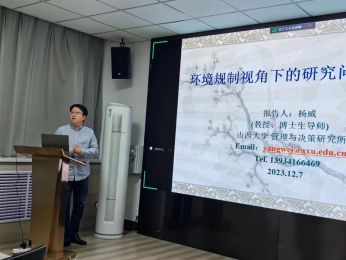 杨威教授从环境规制是政府为了解决"经济高速增长"与"环境质量改善"二者矛盾的政策背景引入,进行了以“环境规制视角下的研究问题及方法”为主题的报告。讲座主要从以下五个方面进行探讨:中国环境规制的发展变迁;环境规制的量化;环境规制相关问题及研究思路;环境规制研究方法;环境规制研究发展趋势。首先,杨威教授从环境保护机构体系发展变迁、环境政策的分类及内容与环境规制的演化变迁三方面分析中国环境规制的发展变迁;其次,基于以下六种方法对环境规制进行量化:基于减排成本衡量环境规制强度、基于DEA框架衡量环境规制要素成本、基于企业污染排放(能源消耗)衡量环境规制强度、基于政府视角的环境规制测度、环境政策虚拟变量、来自政府官员和企业的调查;再次,从宏观层面、中观层面与微观层面详细阐述环境规制相关问题及研究思路;然后,介绍了环境规制的主要研究方法,如:Meta回归分析、向量自回归模型等;最后,杨威教授列示了一些环境规制研究的发展趋势与前沿问题,值得大家深入研究与思考。