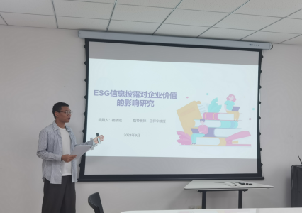 博士生褚靖铭同学进行现场答辩。褚靖铭汇报了论文的研究背景、选题意义、创新点、研究内容、研究方法、研究结论、边际贡献等主要内容;并针对专家提出的问题进行现场答辩。