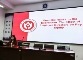 随后,李晓艳老师分享了英文工作论文《From the Ranks to the Boardroom: The Effect of Employee Directors on Pay Equity》。她从研究背景、逻辑框架、理论分析、实证设计和研究贡献等方面进行了详细阐述,该文为理解企业治理与薪酬差距之间的关系提供了全新视角。陈锦全教授对文章进行了点评,肯定了该选题的理论意义和现实意义,并针对后续修改提出了建议。