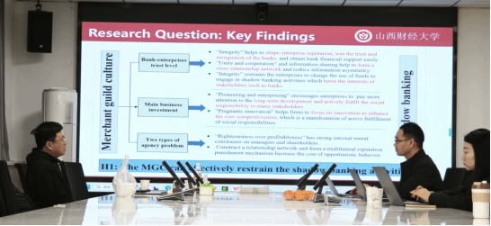 4月9日下午,高教授与学院领导进行座谈交流,了解学院科研工作的发展规划。4月10日全天、11日下午至12日全天,高教授分别与我院焦然、贺亚楠、袁春生、王晓亮、李林波、李校红、郝盼盼等教师深入探讨了国家社科项目申报书的选题、研究思路与框架结构等问题;与李晓艳、王婉婷、王晓燕、黄贤环等青年教师以及博士生郭振雄等同学详细研讨了工作论文;与郭檬楠、李颖等教师以及研究生贺一凡、韩潇等同学深入探讨了研究项目的进展情况以及未来进一步合作的方向。
