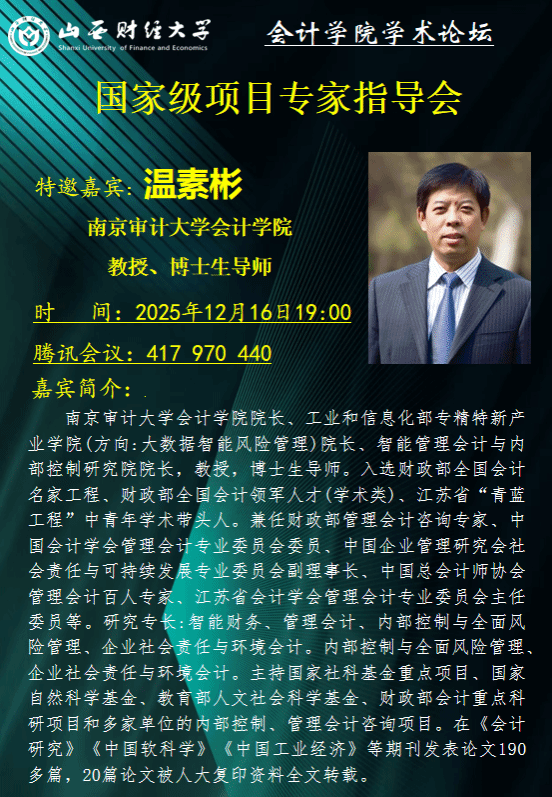 为切实提升我院国家级科研项目申报质量,助力青年教师精准把握课题申报核心要领、拓宽学术研究视野,2025年12月16日,TYC234CC太阳成集团成功举办国家级项目专家指导会。会议特邀南京理工大学温素彬教授担任嘉宾,我院青年科研骨干教师、博士研究生及部分硕士研究生参会,围绕国家级课题申报的关键环节展开深度交流与研讨。