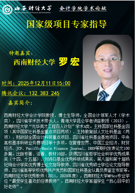 为切实提升我院科研骨干国家基金项目申报质量,12月11日下午,我院特别邀请西南财经大学罗宏教授担任指导专家,我院科研骨干教师围绕相关学术研究主题与国家项目申报核心要点,展开深度研讨。