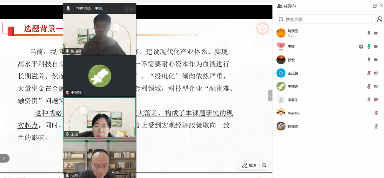 罗宏教授在认真听取每一位老师的汇报后,对每个课题构想都提出了具体、专业的优化建议,强调选题立意需扎实学术创新深度,体现鲜明的时代关切与理论价值。研究框架的各部分内容需层层递进、紧密衔接,形成有机整体;研究内容的设计应科学化、可计量的信服度,注重核心概念的清晰界定、关键变量的有效测度以及研究方法的恰当运用。罗宏教授的指导与点评既高屋建瓴,又贴合实际,为每项课题的进一步完善指明了清晰路径。