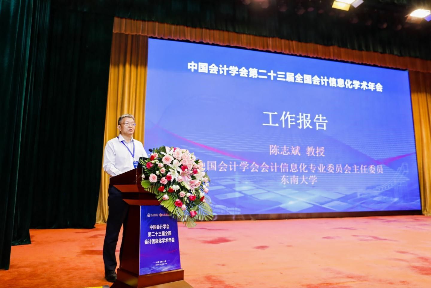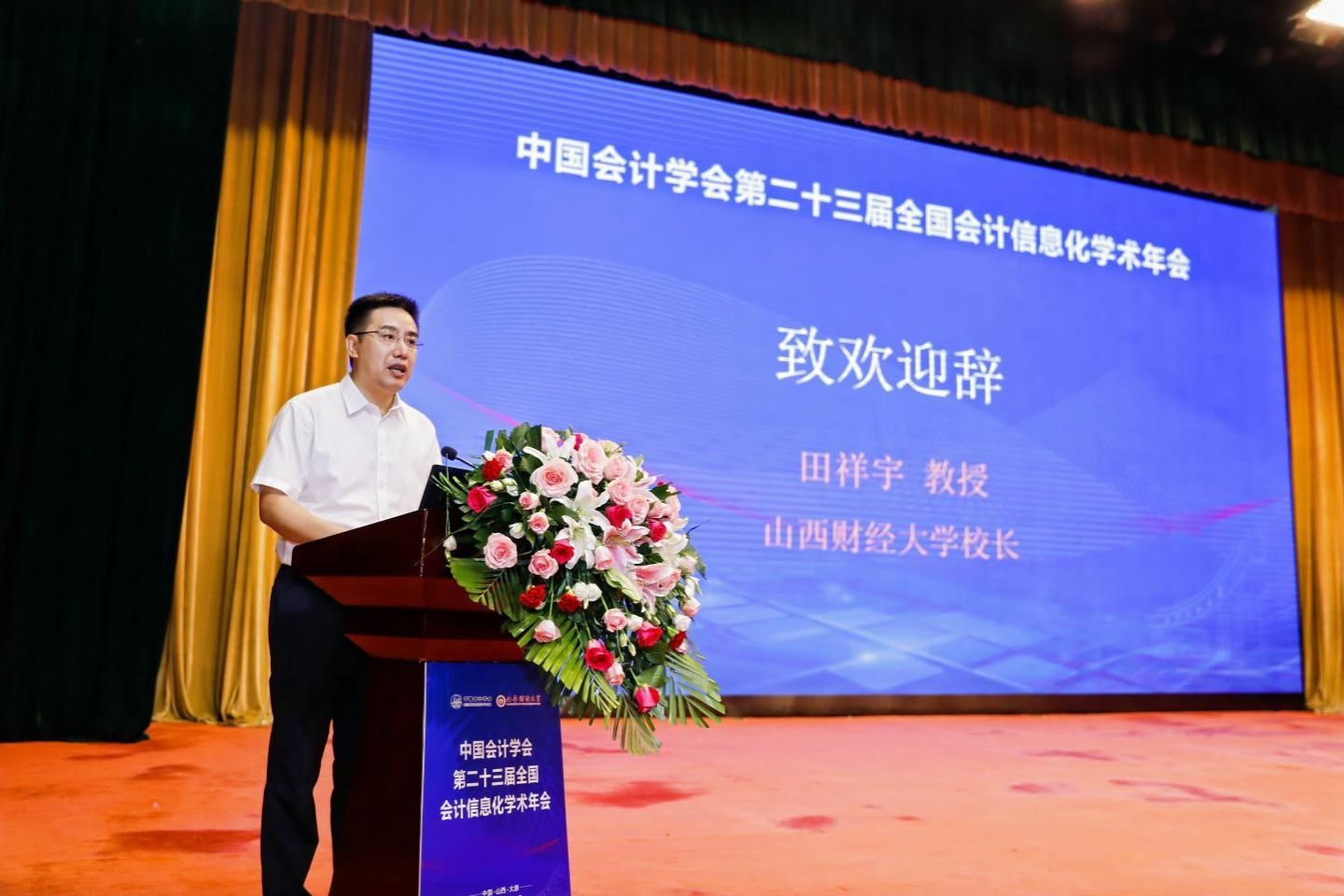 在开幕式上,我校党委副书记、校长田祥宇致辞欢迎各界嘉宾的莅临。财政部会计司制度三处杨海峰处长在讲话中结合新修订的《中华人民共和国会计法》对会计信息化的相关要求进行了阐述,并就下一阶段的工作重点做了说明。中国会计学会副秘书长刘国强博士通过视频发表讲话,对借助信息化的发展推动我国自主会计理论体系创新寄予厚望。山西省财政厅党组成员、副厅长陈新民在讲话中介绍了山西省开展会计信息化相关工作的情况,着重介绍了在小微企业云会计代账平台建设、数据增信接口标准等方面试点工作的最新进展。中国会计学会会计信息化专业委员会主任委员、东南大学首席教授陈志斌做工作报告,就专委会加强数字会计研究以及中国会计信息化方面的自主知识体系建设、为支持中国式现代化建设作出会计信息化专委会应有的贡献等工作进行全面部署。开幕式由我校党委常委、副校长张卫国主持。