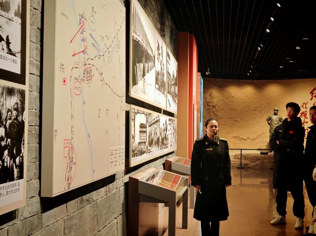 1月19号下午,同学们正式前往了研学第一站。在八路军太行纪念馆,一幅幅泛黄的照片、一件件珍贵的文物、一个个感人的场景,将大家带回了那个山河破碎却热血沸腾的抗战年代。从八路军出师抗日的壮阔历程,到太行军民同仇敌忾的战斗场景,从艰苦卓绝的后勤保障,到军民鱼水的深厚情谊,同学们在讲解员的带领下,系统了解了太行地区在全民族抗战中的重要地位,深刻体会到革命先辈为国家独立、民族解放付出的巨大牺牲。