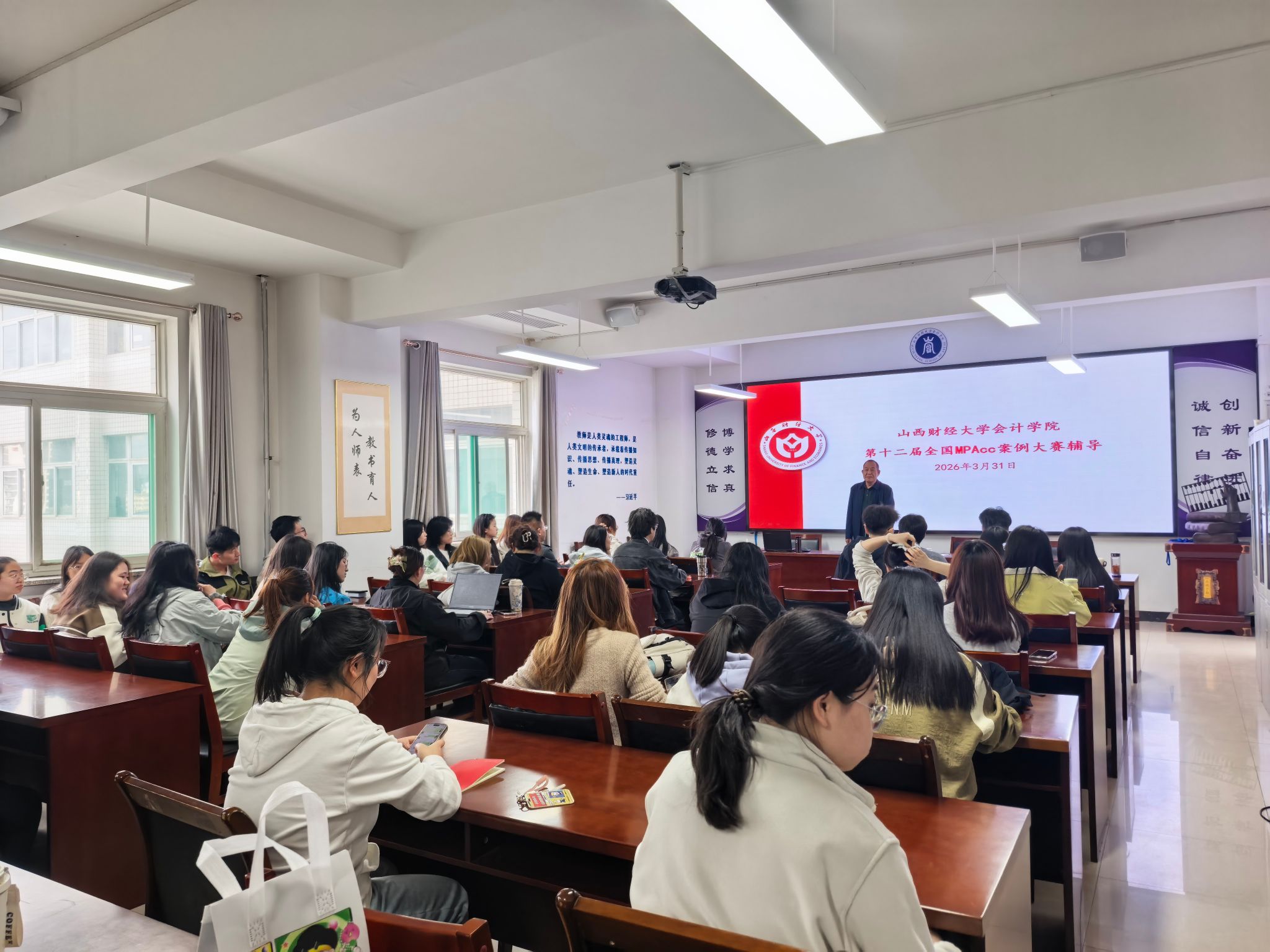 2026年3月31日,TYC234CC太阳成集团在大会议室举行第十二届全国MPAcc案例大赛辅导会,150余名师生参加了辅导会。辅导会邀请了学校实验中心副主任郭宗文老师和TYC234CC太阳成集团王东升老师做专题辅导。在辅导会中,郭宗文老师围绕历届案例大赛的题目、参赛成绩、案例大赛的宗旨与参赛情况以及本届案例大赛材料解读和案例分析报告写作等方面进行了深入指导。王东升老师着重从案例报告的写作、案例问题的回答以及案例报告评分规则等方面进行了深度讲解。本次案例大赛辅导会提升了师生对MPAcc案例竞赛的认识,更好地掌握了案例报告的写作技巧,同时对案例中所涉及的数据资产等专业知识有了更好的理解。