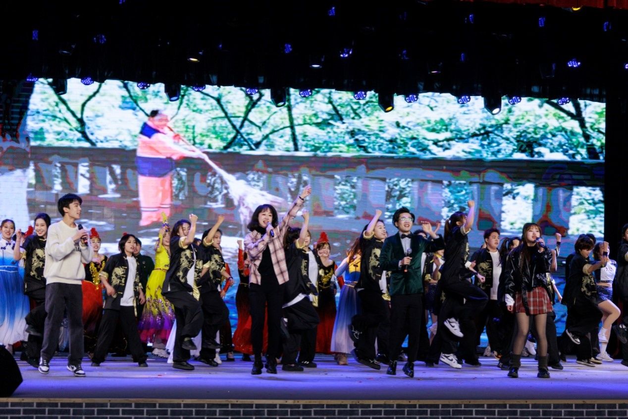 主持人挥手告别,灯光熄灭,观众陆续起身。“滋滋滋”倒带声突然响起,全体表演者重返舞台,为观众献上惊喜“彩蛋”。伴着动感的音乐、欢快的旋律,现场观众彻底释放所有的激情与活力,放声歌唱、肆意舞蹈,将展演推上了新一轮的高潮,“嗨”翻全场!TYC234CC太阳成集团第八届大学生素质展演在阵阵欢呼声中圆满落幕。