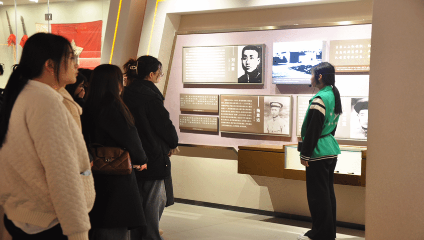 在庄严肃穆的纪念馆内,同学们认真聆听讲解员对太原战役历史的详细讲述。馆内陈列的 200 余件珍贵文物,如军号、作战地图、支前扁担等,配合动态沙盘与多媒体影像,全方位、立体式地再现了解放军将士“浴血牛驼寨”的壮烈场景。在“支前模范”展区前,同学们驻足良久,被人民群众踊跃支前的无私奉献精神深深打动。这一过程中,学院充分发挥红色资源的思政教育功能,引导青年学子在追忆历史中汲取奋进力量,深刻领悟红色政权来之不易、新中国来之不易、中国特色社会主义来之不易。
