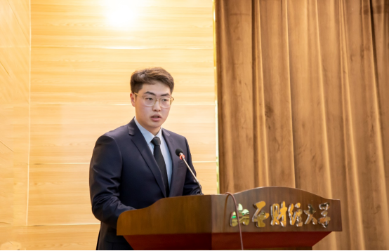 2021级资产评估专业硕士研究生杨家玮作为学生代表作了表态发言。他表示,感谢培养基地为我们大学生的实习、实践和就业提供这样优质的平台,今后我们一定不负韶华,努力学习、勤勉工作,以饱满的青春热情为资产评估行业的发展贡献自己的青春力量。