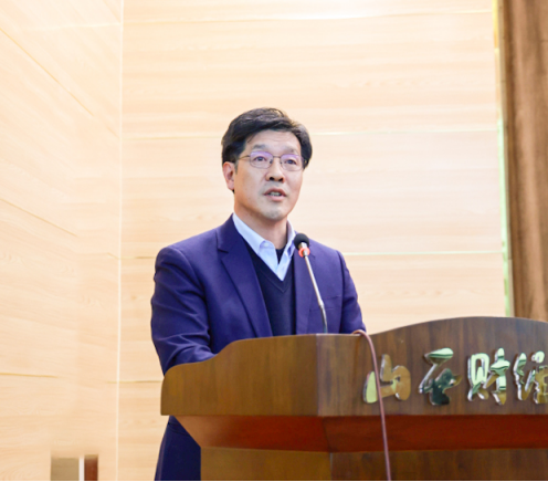 蔡江泽副厅长对母校人才培养质量和近些年取得的改革发展成就给予高度赞扬和充分肯定。他指出“山西省资产评估行业青年人才培养基地”的建立,是我省注册评估师行业发展的一件大事,是山西省财政厅与太阳集团开启深度合作的崭新起点。基地的成立对于实现高校与行业组织的优势互补和资源共享,解决我省资产评估专业大学生实习就业需求与资产评估机构人才紧缺之间的矛盾,实现人才培养和行业发展的双赢目标,十分有意义。他勉励同学们珍惜机会、珍惜时光,努力学习、学以致用,积极投身资产评估事业,以良好的职业操守、扎实的专业能力,扛起新时代赋予资产评估行业的使命和责任,以专业报国的初心情怀,在我省全方位推动高质量发展的宏伟征程中贡献智慧和力量。